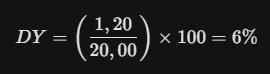 Se uma ação custa R$ 20,00 e pagou R$ 1,20 de proventos no último ano: